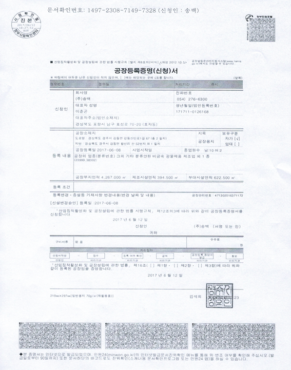 사업장주소 : 경북 경주시 강동면 강동산단로 1길 67